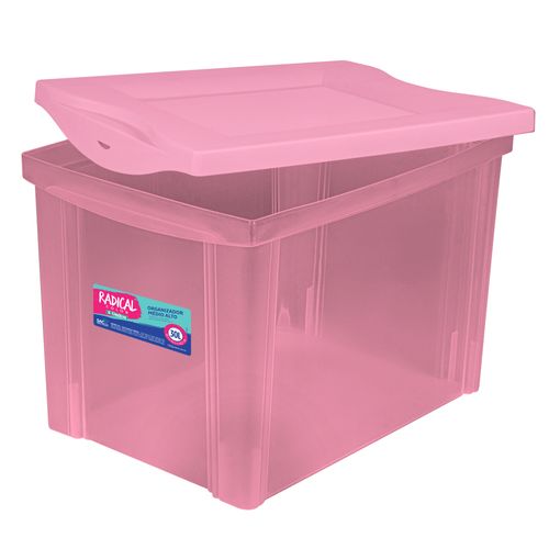 Caixa Organizadora Plástica Alta Rosa 30L Radical Color Ordene