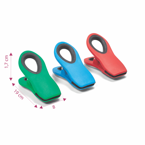 Clipe Porta-Recados Magnético Plástico com Ímã Cores Sortidas Log Ordene 3 Peças