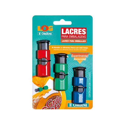 Lacre para Embalagens Plástico Azul/Vermelho/Verde Log Ordene 3 Peças