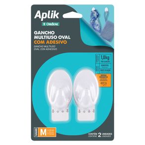 O Gancho Adesivo Plástico Oval Médio Branco Aplik Ordene 2 Peças possui com adesivo removível para aderência e serve decorar e organizar sua cozinha, lavanderia, quartos, banheiros de forma prática, sem sujeira e sem furos. De aplicação rápida, o kit, que vem com 2 unidades, também é de fixação permanente. Ele suporta até 0,8kg com o seu tamanho médio. Pode ser colado em diversas superfícies e, até mesmo, em áreas úmidas. Seu adesivo permite que o gancho seja trocado de lugar sem danificar a parede.