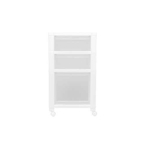 Gaveteiro Plástico Retangular Estreito com 2 Gavetas Baixas e 1 Alta e Rodas Branco/Transparente Log Ordene