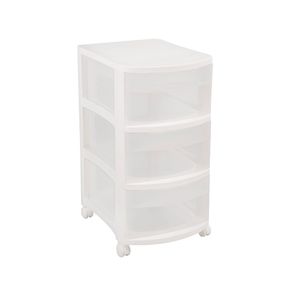 Gaveteiro Plástico Retangular Estreito com 3 Gavetas Médias e Rodas Branco/Transparente Log Ordene