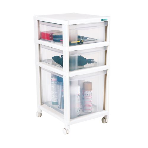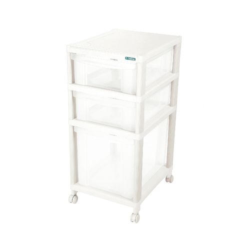 Gaveteiro Plástico Retangular Médio com 2 Gavetas Baixas e 1 Alta e Rodas Branco/Transparente Log Ordene