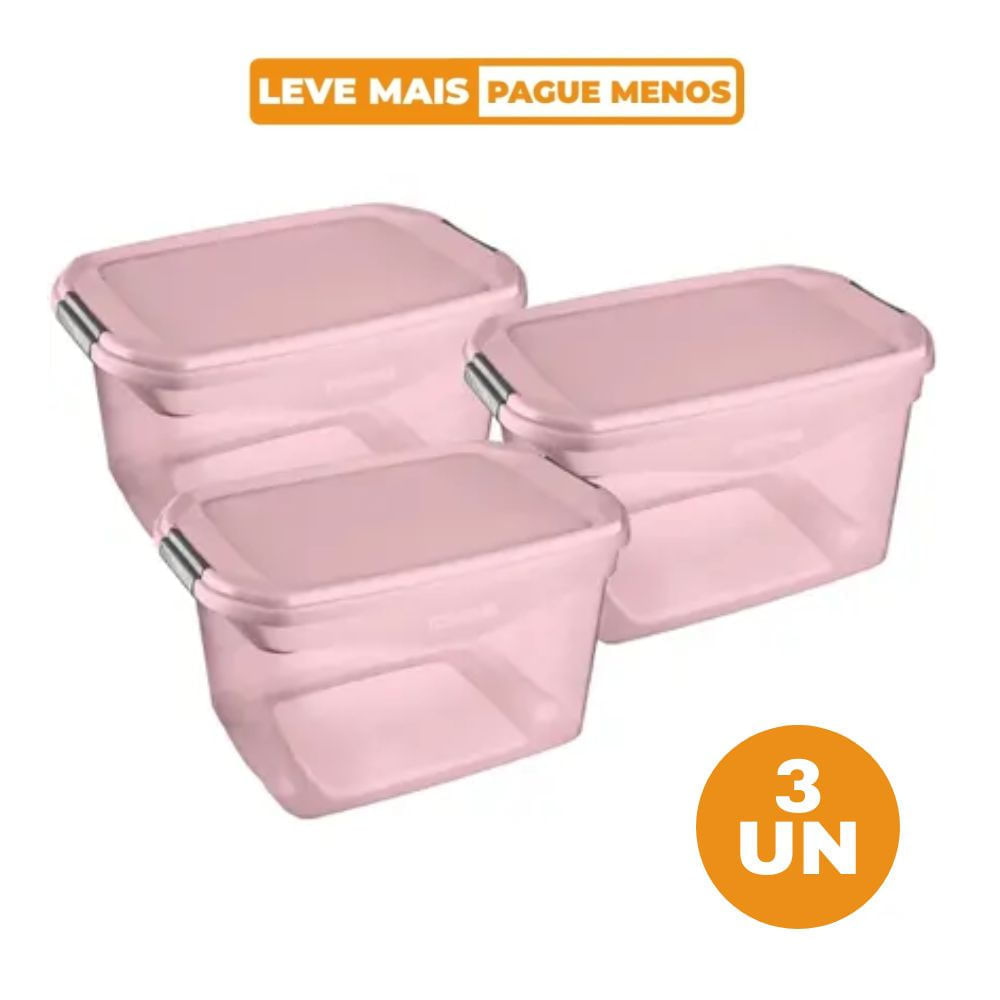 Kit 3 Caixa Organizadora Plástica Rosa 29L Flex Sanremo