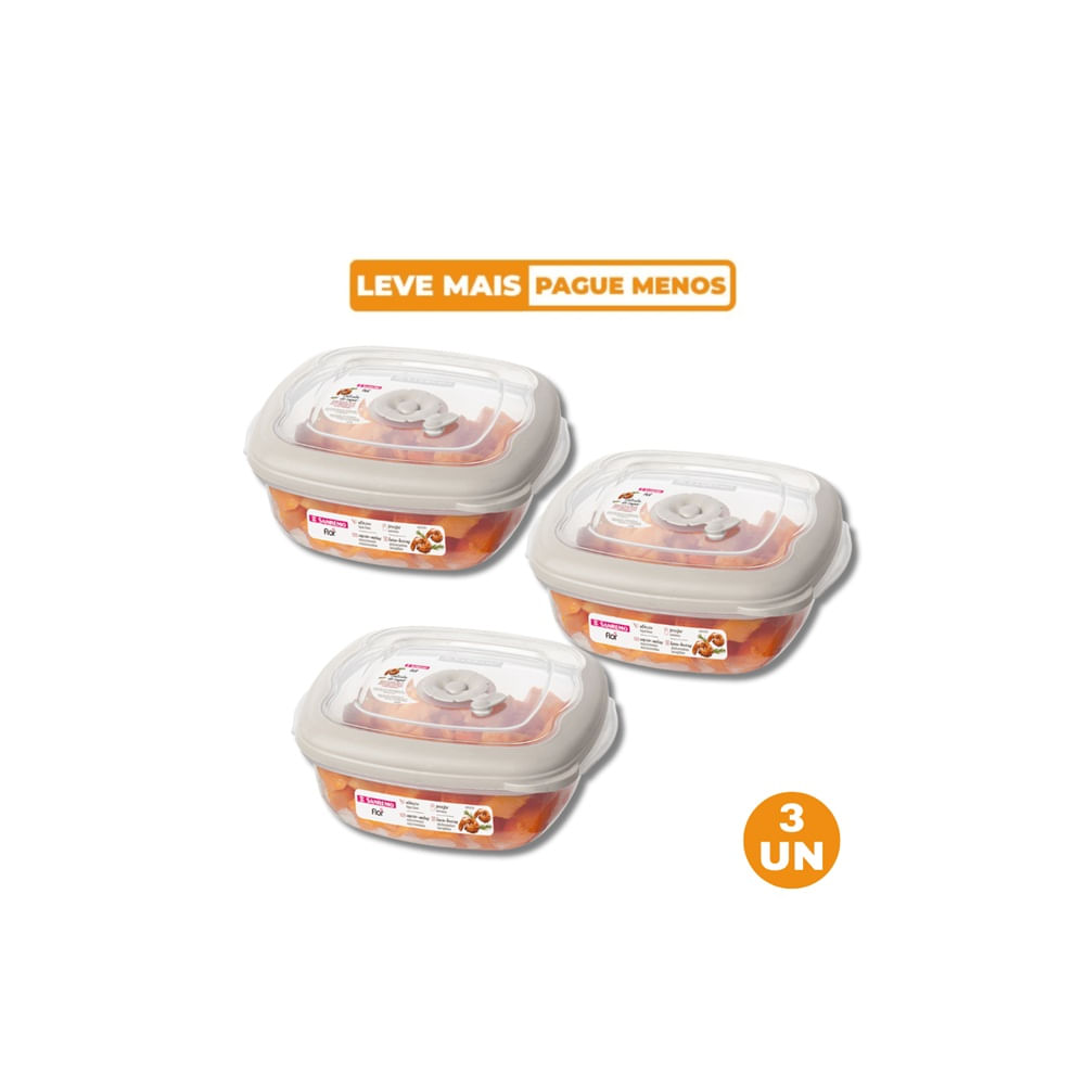 Kit 3 Potes Plásticos Quadrados Herméticos Cappuccino 920ml Flor Sanremo