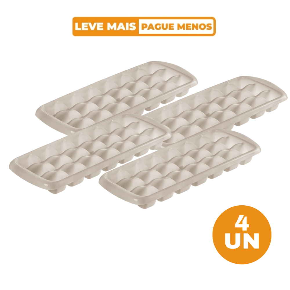 Kit com 4 Forma com design clássico e clean, que você retira o gelo fácil, fácil: basta apertar nas laterais. Material de qualidade - durável - resistente a baixas temperaturas.