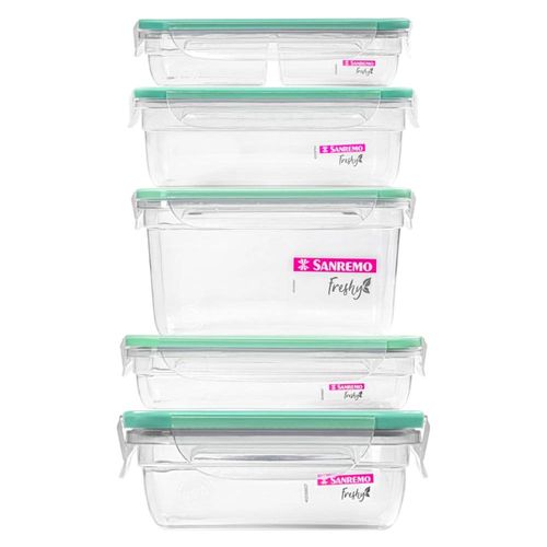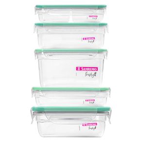 Kit 5 Potes Plásticos com Travas Hermético Verde Freshy Sanremo