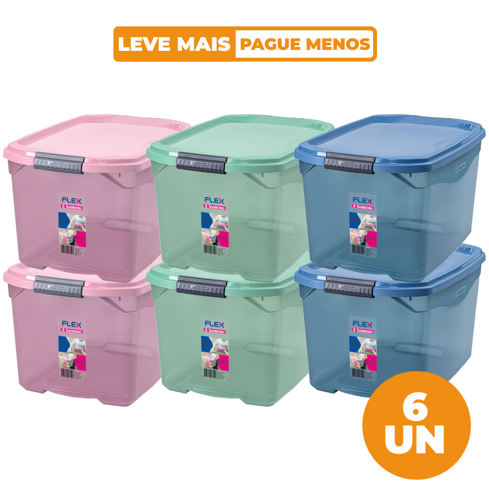 Kit 6 Caixas Organizadoras 29L Coloridas Flex Sanremo