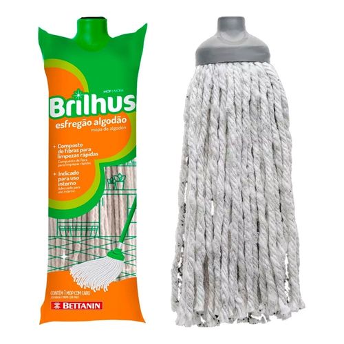 Brilhus Mop Esfregão Algodão tem fibras 100% algodão, são resistentes e absorventes.