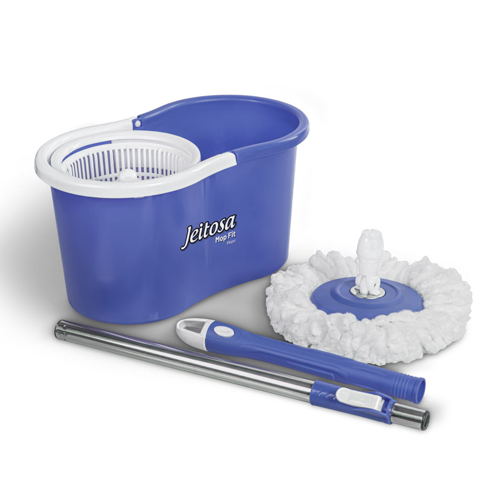 O Jeitosa Mop Fit 8L possui design exclusivo e é ideal para limpeza de pisos lisos e internos. Ele vem acompahado do sitema lava e seca, evitando contato das mãos com o produto de limpeza. Seu refil foi desenvolvido com fios de microfibra de alto desempenho, que garante a máxima absorção com uma limpeza profunda sem danificar o piso, além de alcançar locais de difícil acesso. Balde com centrífuga e refil 100% microfibra.