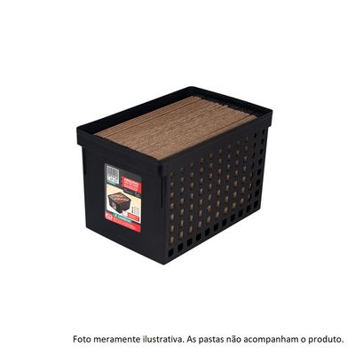 OFFEconomize R$ 21,00Caixa Organizadora Arquivo Larga Empilhável Cristal Tampa Preta Office Line Ordene