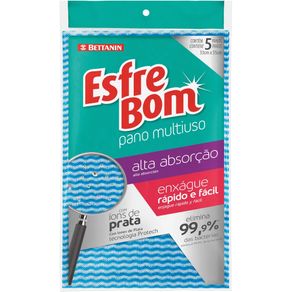 O tradicional Pano Multiuso Antibacteriano Almofada Azul EsfreBom Bettanin pode ser usado em cada cantinho da casa! É um produto desenvolvido com tecnologia de proteção antibacteriana, que elimina a proliferação de bactérias e mau cheiro. Possui alta absorção, é de enxágue rápido e fácil e indicado para a limpeza de fogão, móveis e pias.