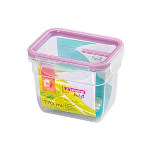 O Pote Plástico com Travas Hermético Açaí 770ml Freshy Sanremo conta com design moderno, inteligente e funcional: possui borracha integrada na tampa, quatro travas com aquele “click” - que garantem o fechamento hermético - e o melhor: