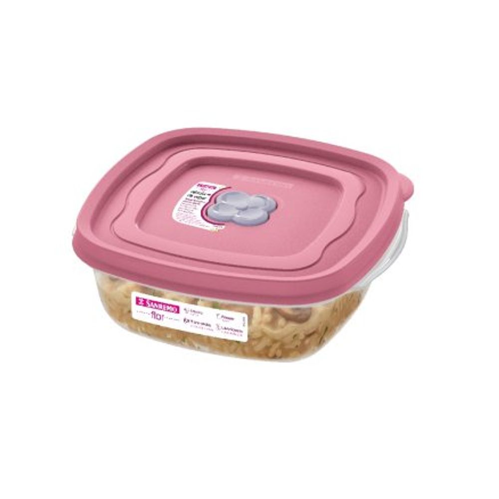 Pote Plástico Quadrado Hermético Rosa 920ML Flor Sanremo