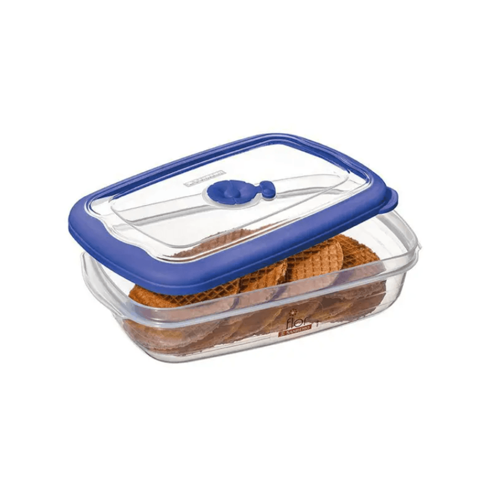 Pote Plástico Retangular Hermético Azul 1,26L Flor Sanremo
