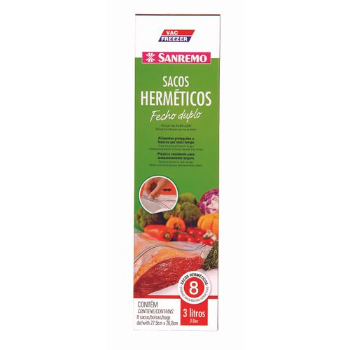 Saco Plástico Hermético com Fecho Duplo 3L Vac Freezer Sanremo