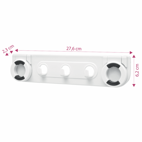 O Suporte Multifuncional Plástico para Lavanderia 5 Penduradores Branco Log Ordene foi desenvolvido para trazer mais conforto e praticidade para seu dia a dia. Com dois suportes para cabos e três ganchos multiuso, pode ser utilizado para organizar diversos utensílios de limpeza, como vassouras, rodos e pás. Pode ser utilizado na cozinha, lavanderia, garagem e área de serviço. Suporta até 1 kg por gancho.